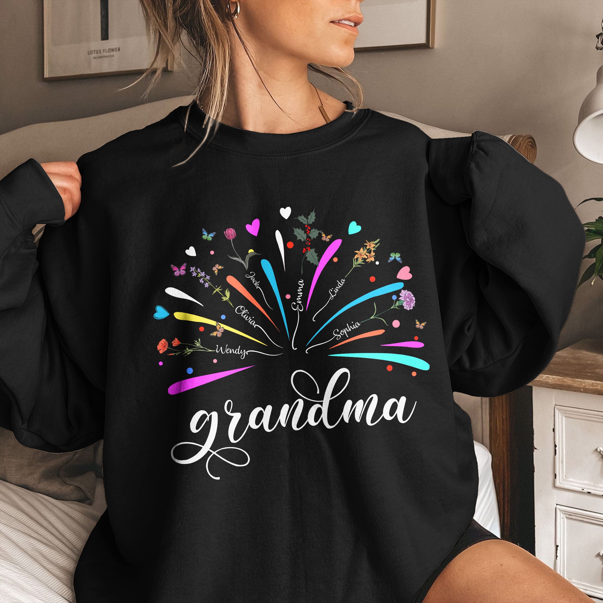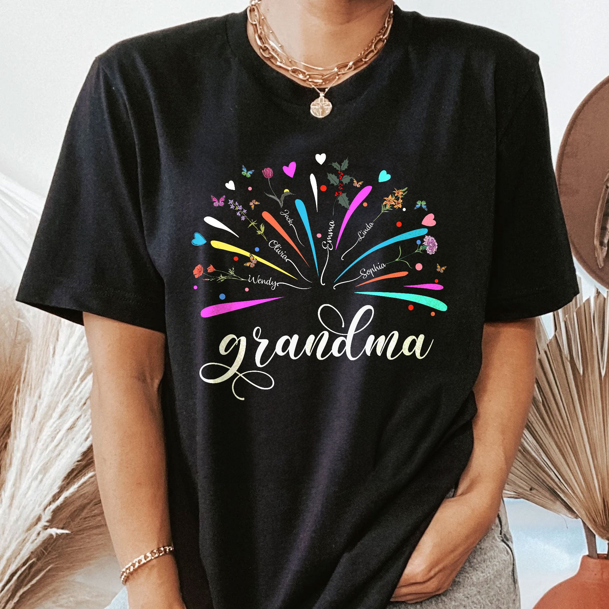 Be the first to review “Proud Grandma And Kids Firework Birth Month Flowers – PersonalizedOne Size Shirt”